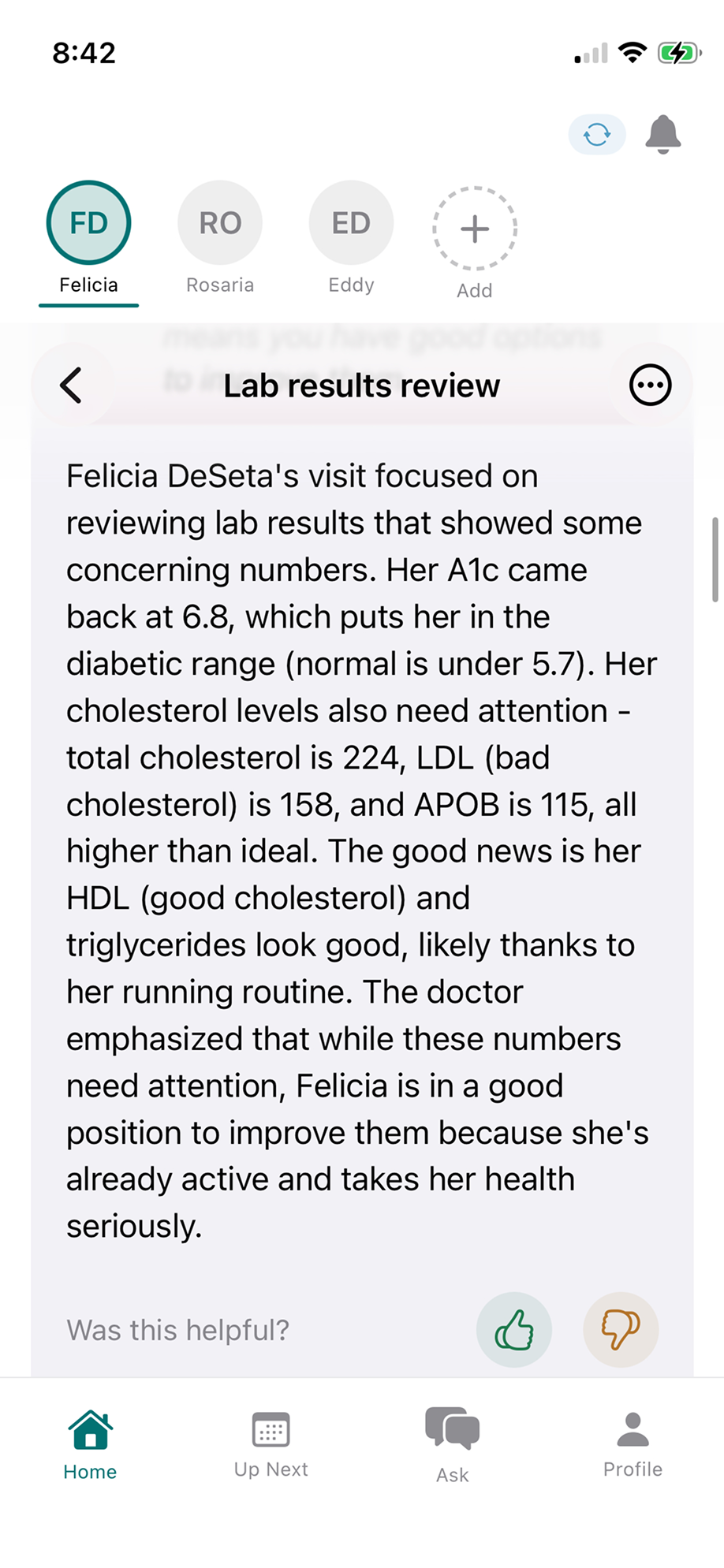 Ask "what's my A1C doing?" and get the answer in seconds.