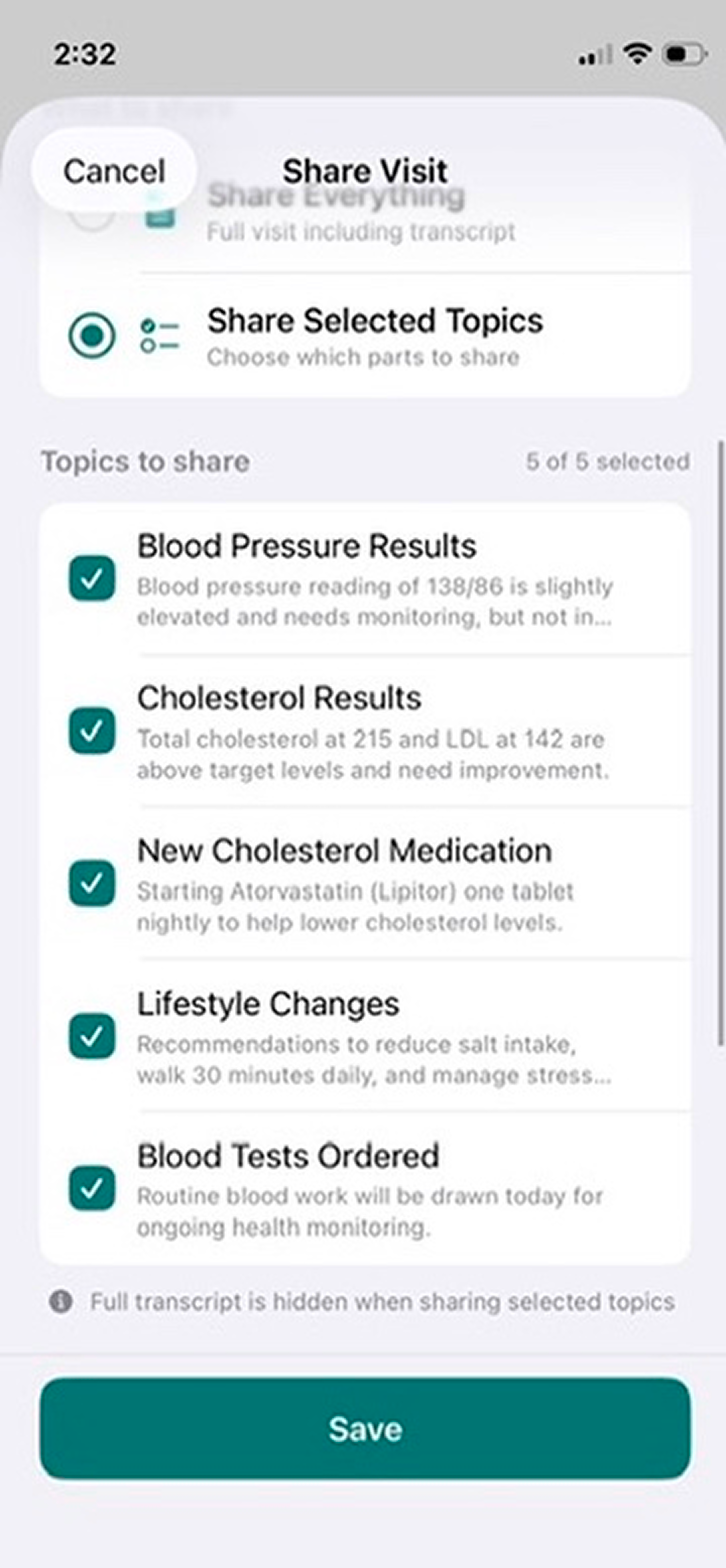 Not everything a parent tells their doctor is for their kids. Mental health, substance use, sexual and reproductive health — VisitRecall flags these sections automatically and keeps them out of anything shared with family unless your parent explicitly opens them up.
