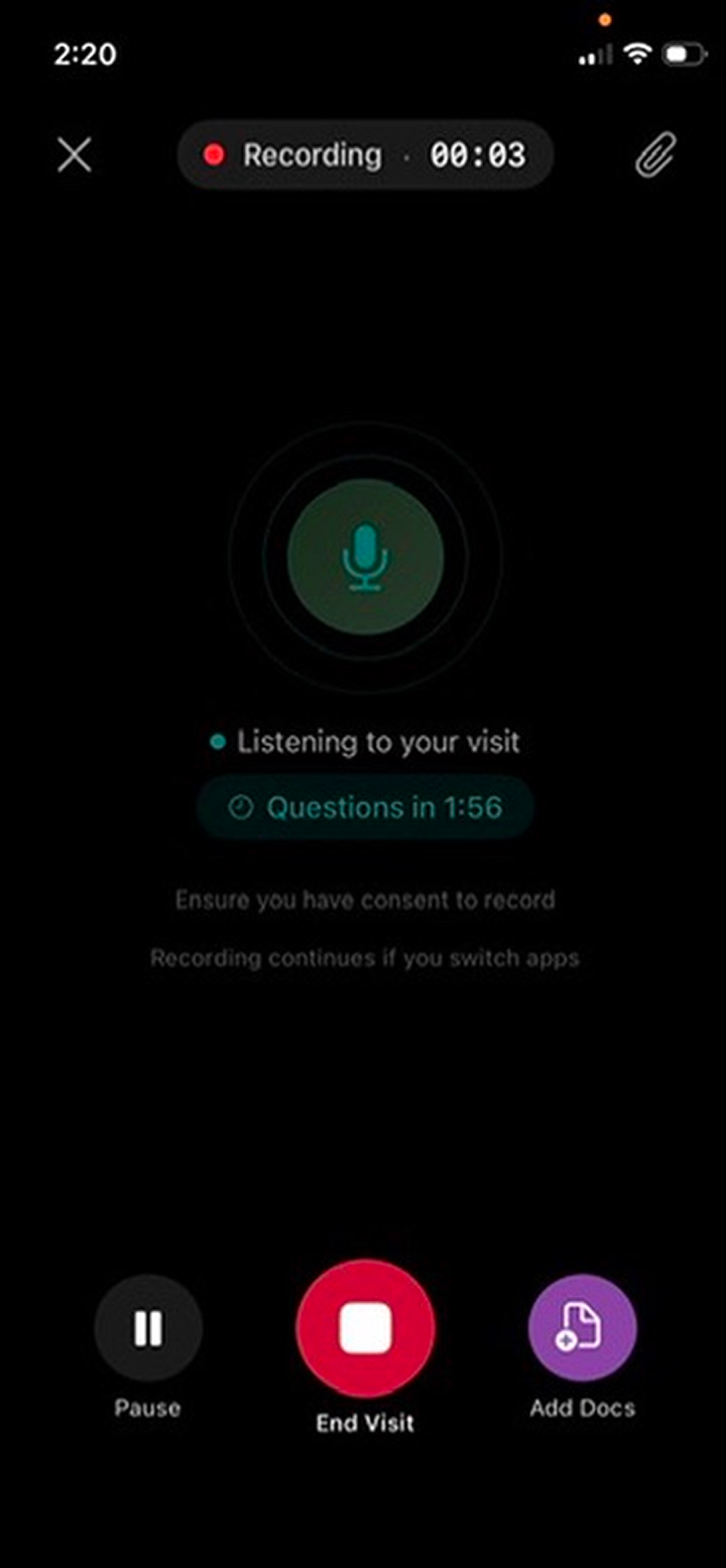 In the waiting room or when the doctor walks in. The recording runs in your pocket.